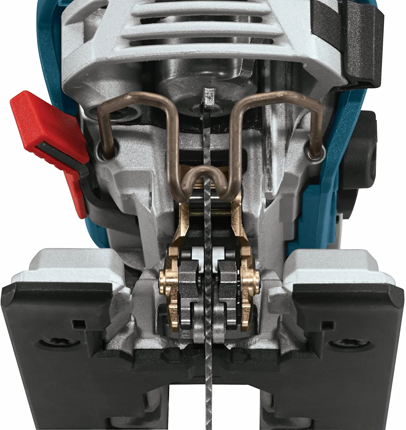 The Bosch JS572EK Top-Handle Jig Saw provides excellent cut precision, thanks to the innovative Precision Control II double-roller system. This construction minimizes blade deflection for true, exact cuts. Woodworkers and kitchen and bath installers are among the many user groups that will appreciate the best-in-class 7.2-amp motor and variable-speed control. This jig saw is an excellent choice for curve-cutting and scallop-cutting and other cuts in a wide array of materials. Built with an aluminum gearbox with an insulated cover, this jig saw has a state-of-the art counterbalancing mechanism for low vibration and Constant Response circuitry for consistent speed under load.