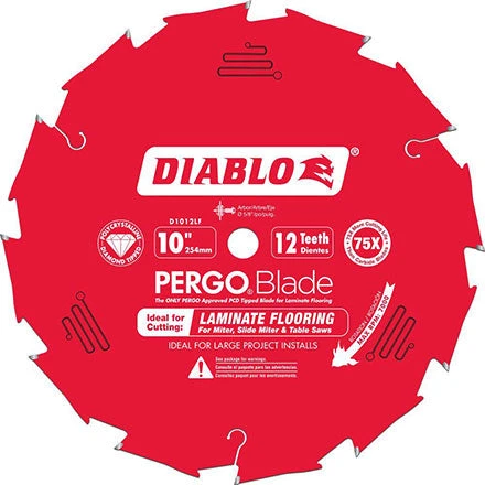 Diablo’s 10″ PCD Tooth PergoBlades are the first blades specifically designed for cutting laminate flooring in a chop saw application. This radical new design delivers 75 times the cutting performance compared to a carbide-tipped saw blade. This blade is the only approved blade by the Pergo brand for cutting their material.