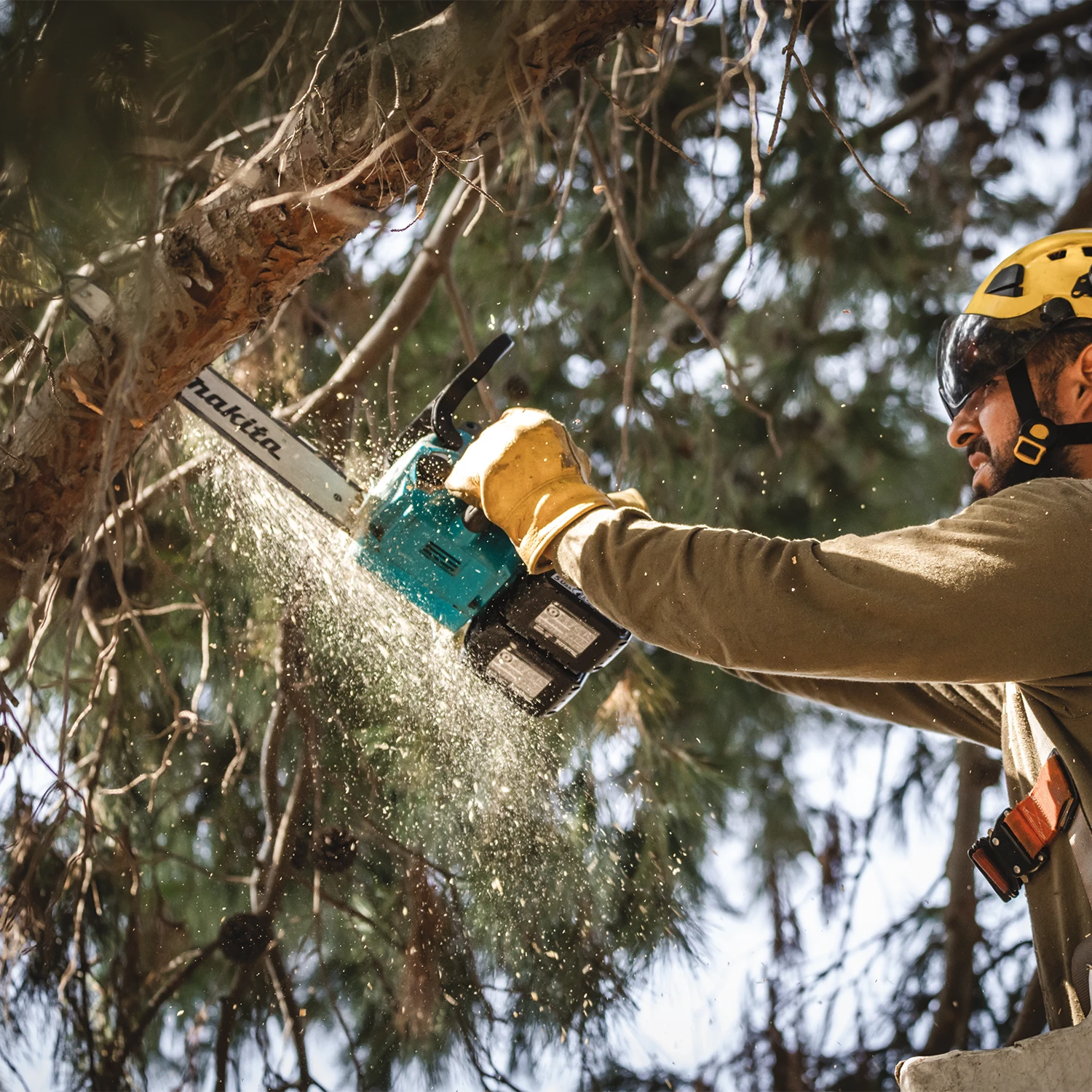 It has zero emissions and reduced maintenance: there’s no engine oil to change, no spark plug to replace, no air filter or muffler to clean, and there’s no need to drain the fuel for storage. With the Makita Outer Rotor Brushless Motor with direct-drive system, users get high power efficiency. Other convenience features include adjustable automatic chain lubrication, built-on lock-off lever to help prevent the chain from accidentally engaging, an electric brake for maximum productivity, and more.
