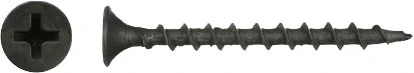Bugle head, full coarse thread, sharp point, black phosphate coating.